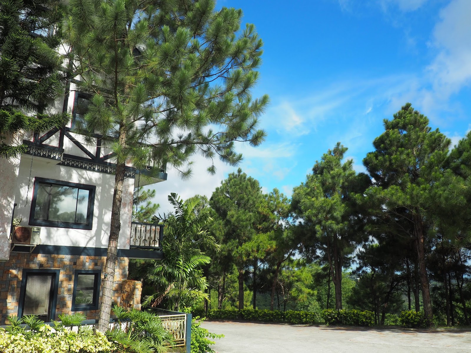 A lot of pine trees approaching to the Crosswinds Resort Suites